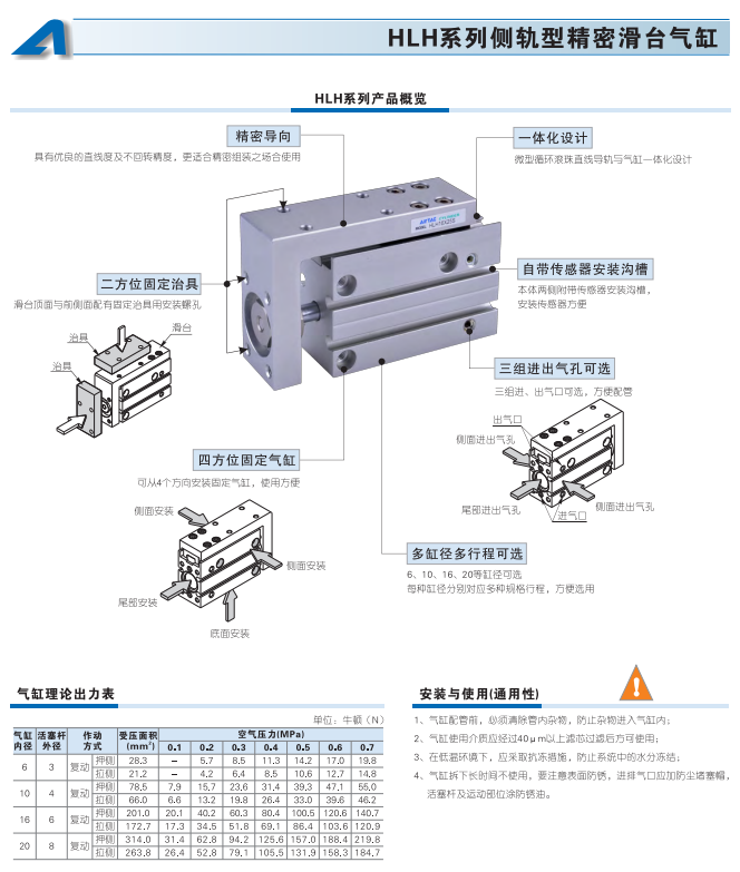 HLH系列側(cè)軌型精密滑臺(tái)氣缸